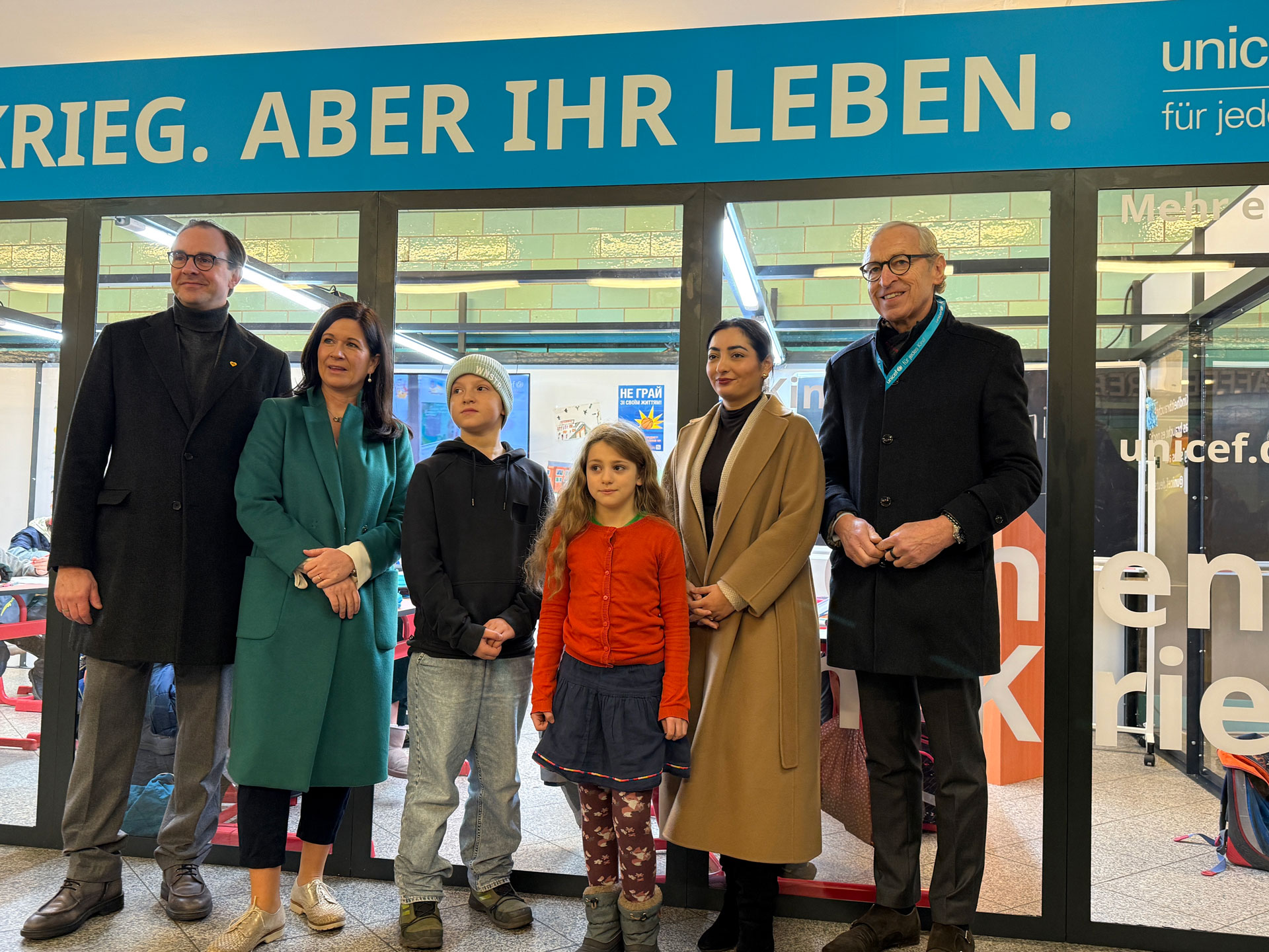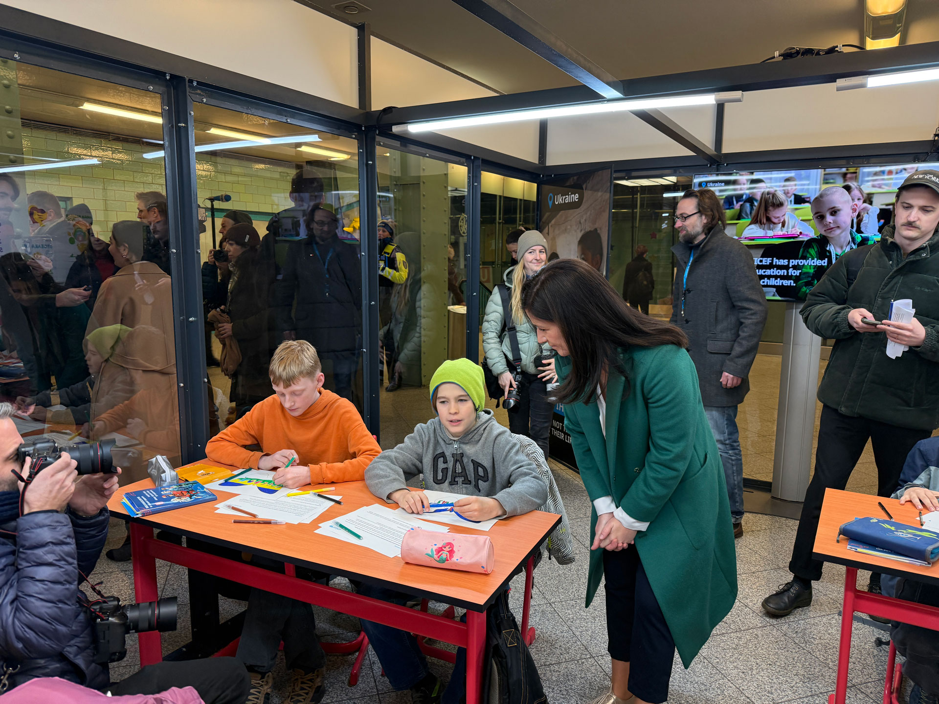 Am 17.12.2025 waren die Stammgruppensprecher*innen unseres Schüler*innenparlaments Teil einer ganz besonderen Aktion. Mitarbeiter*innen von UNICEF haben im U-Bahnhof Alexanderplatz einen unterirdischen Klassenraum aufgebaut. Mit der Aktion sollte an die vielen Kinder erinnert werden, die in der Ukraine nur noch in U-Bahnhöfen lernen können, weil ihre Schulen zerstört sind oder weil es zu gefährlich ist, in den oberirdischen Schulen zu lernen.