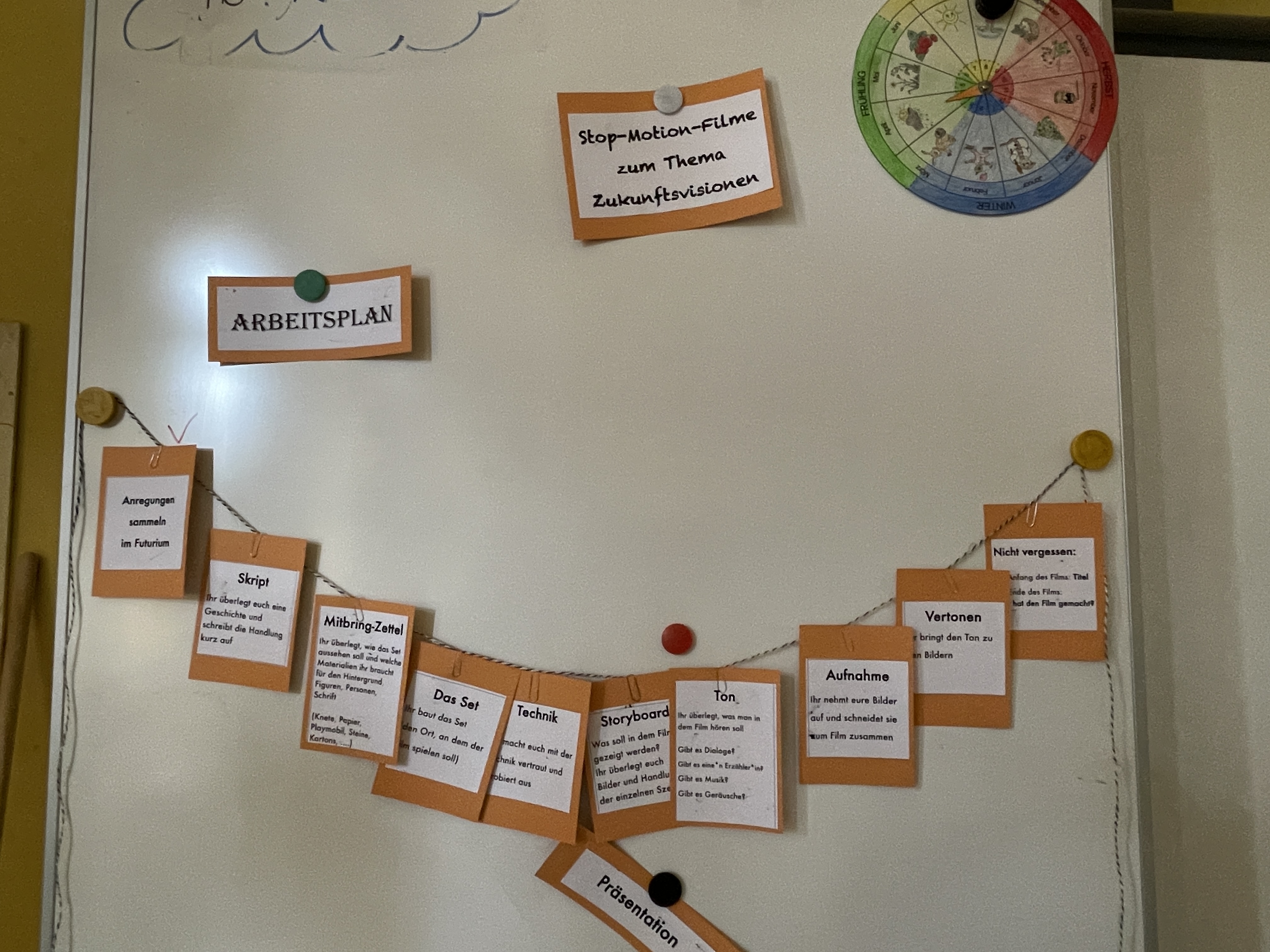 Vom 24. April bis zum 28.April 2023 fand unsere Projektwoche zum Thema "Zukunftswerkstatt" statt. Es wurden Zukunftsplakate gemalt, Raketen gebaut, Hörspiele aufgenommen und Trickfilme gedreht. Überall im Haus uns auf dem Schulhof wurde gebastelt, genäht, gebaut und nachgedacht. Einige Eindrücke der Arbeit sehr ihr hier: