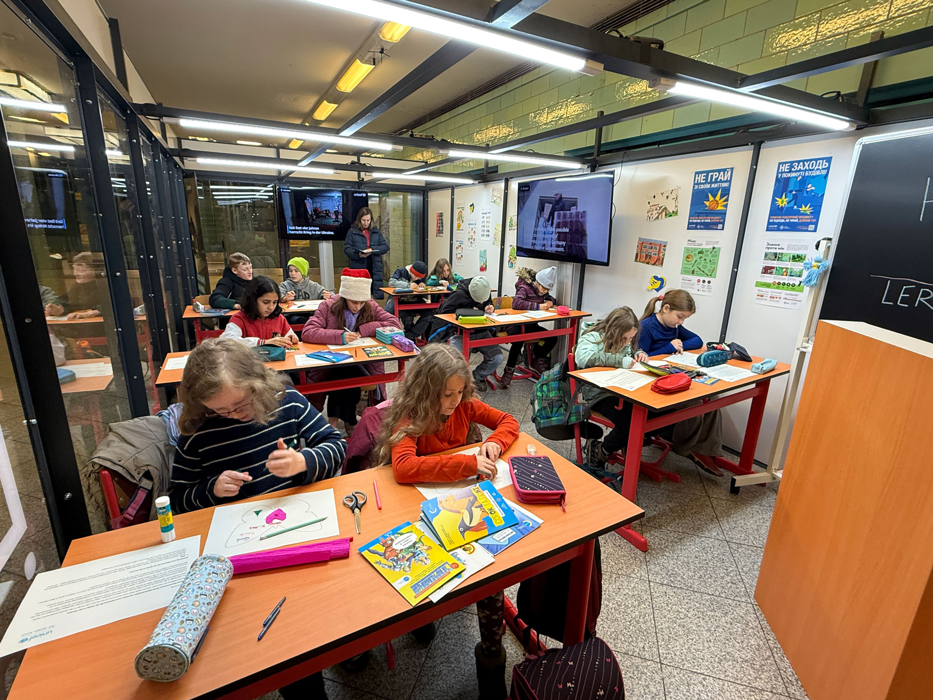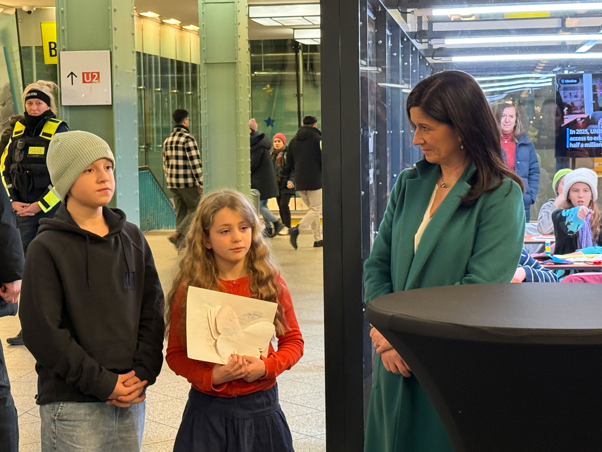 Am 17.12.2025 waren die Stammgruppensprecher*innen unseres Schüler*innenparlaments Teil einer ganz besonderen Aktion. Mitarbeiter*innen von UNICEF haben im U-Bahnhof Alexanderplatz einen unterirdischen Klassenraum aufgebaut. Mit der Aktion sollte an die vielen Kinder erinnert werden, die in der Ukraine nur noch in U-Bahnhöfen lernen können, weil ihre Schulen zerstört sind oder weil es zu gefährlich ist, in den oberirdischen Schulen zu lernen.
